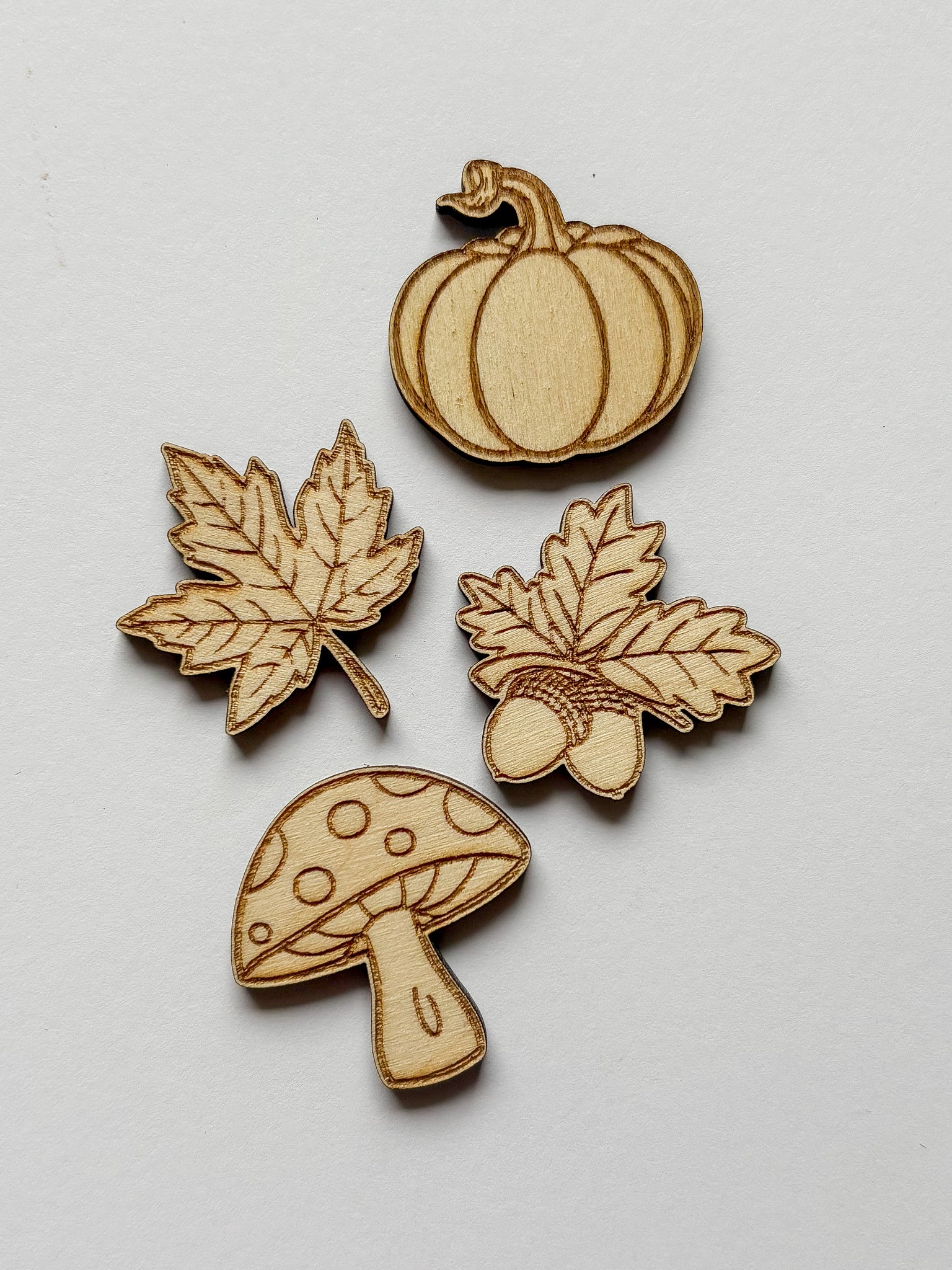 Dřevěné ozdoby s podzimní tématikou z mojí malé dílny jsou vhodné k ozdobení vašich podzimních dekorací, věnce vchodových dveří nebo k ozdobený macramé rodinek.