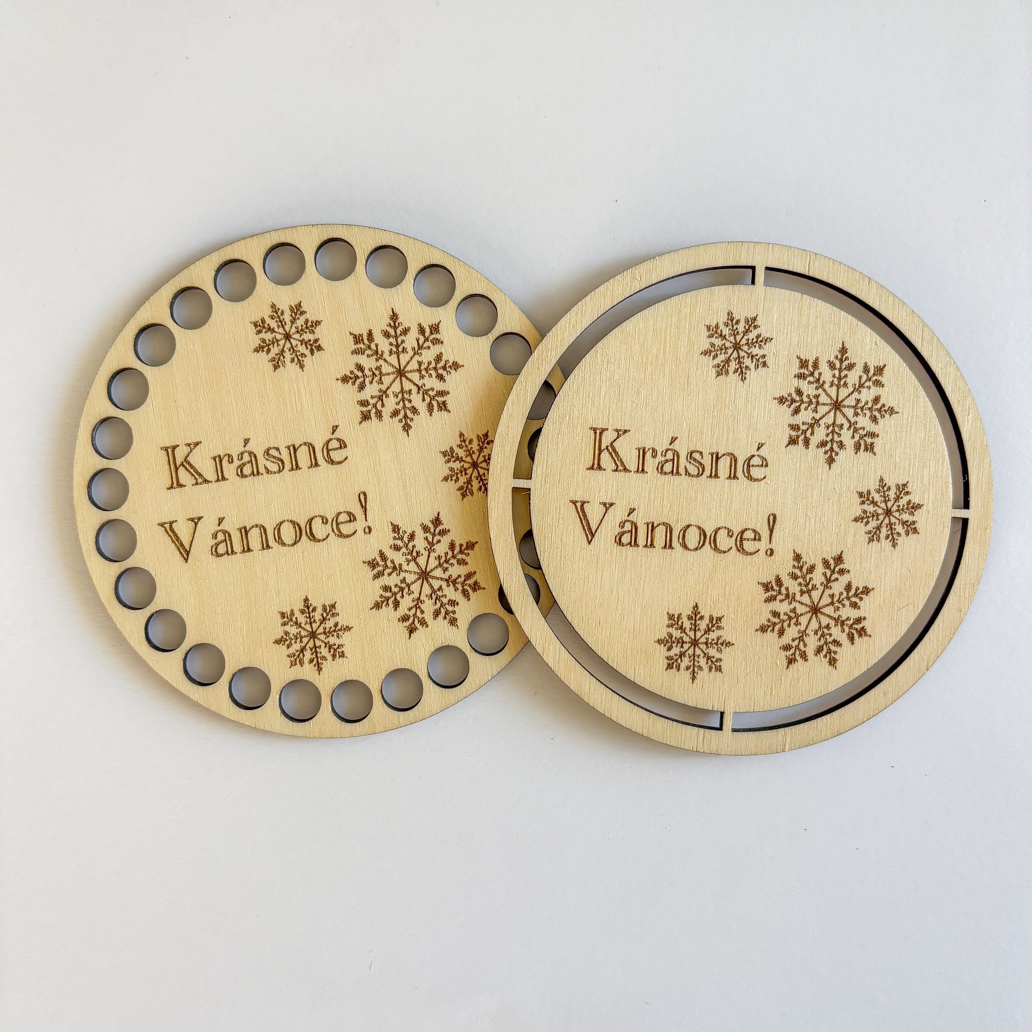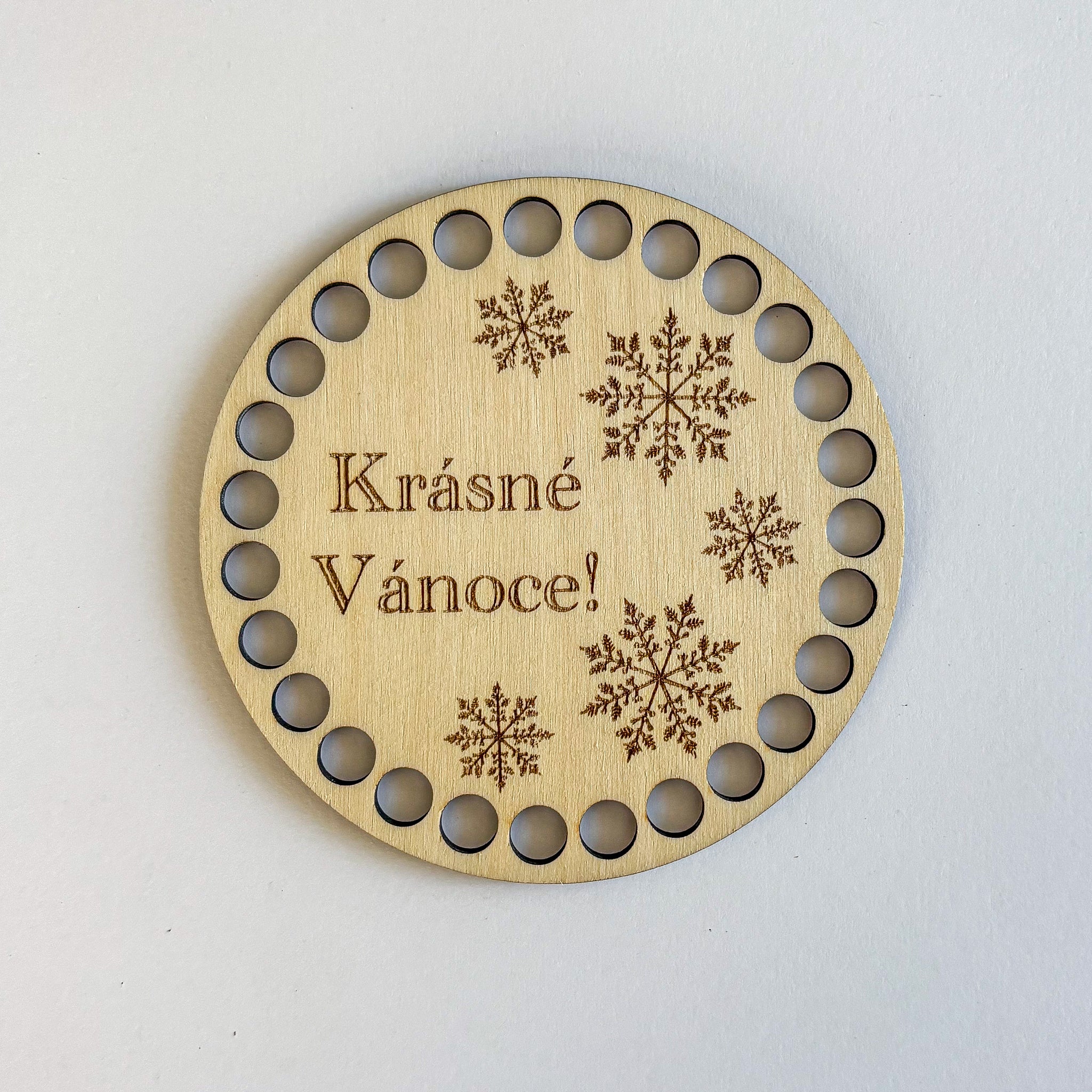 Dřevěný základ na háčkovaný nebo macramé podtácek z mojí dílny o průměru 10 cm. Všechny motivy jsou mou autorskou tvorbou.
