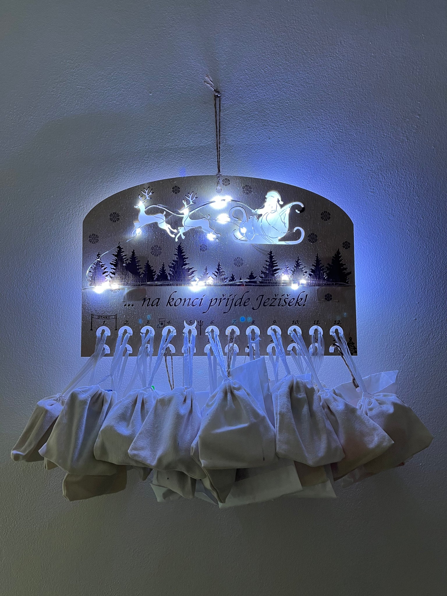 - Světýlka s bílým světlem, aby vám adventní kalendář vytvořil večer dokonalou atmosféru a byl i krásnou vánoční dekorací.