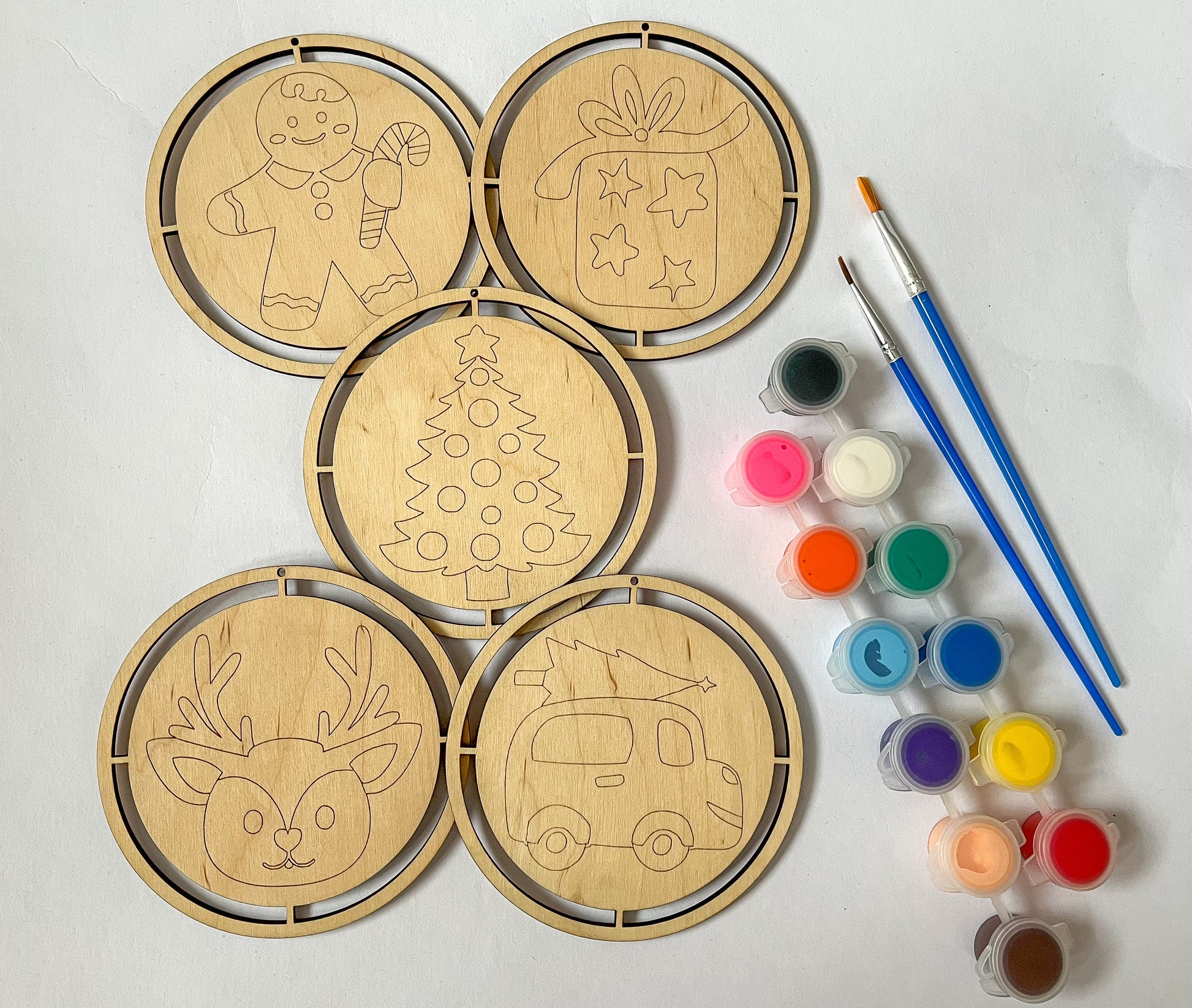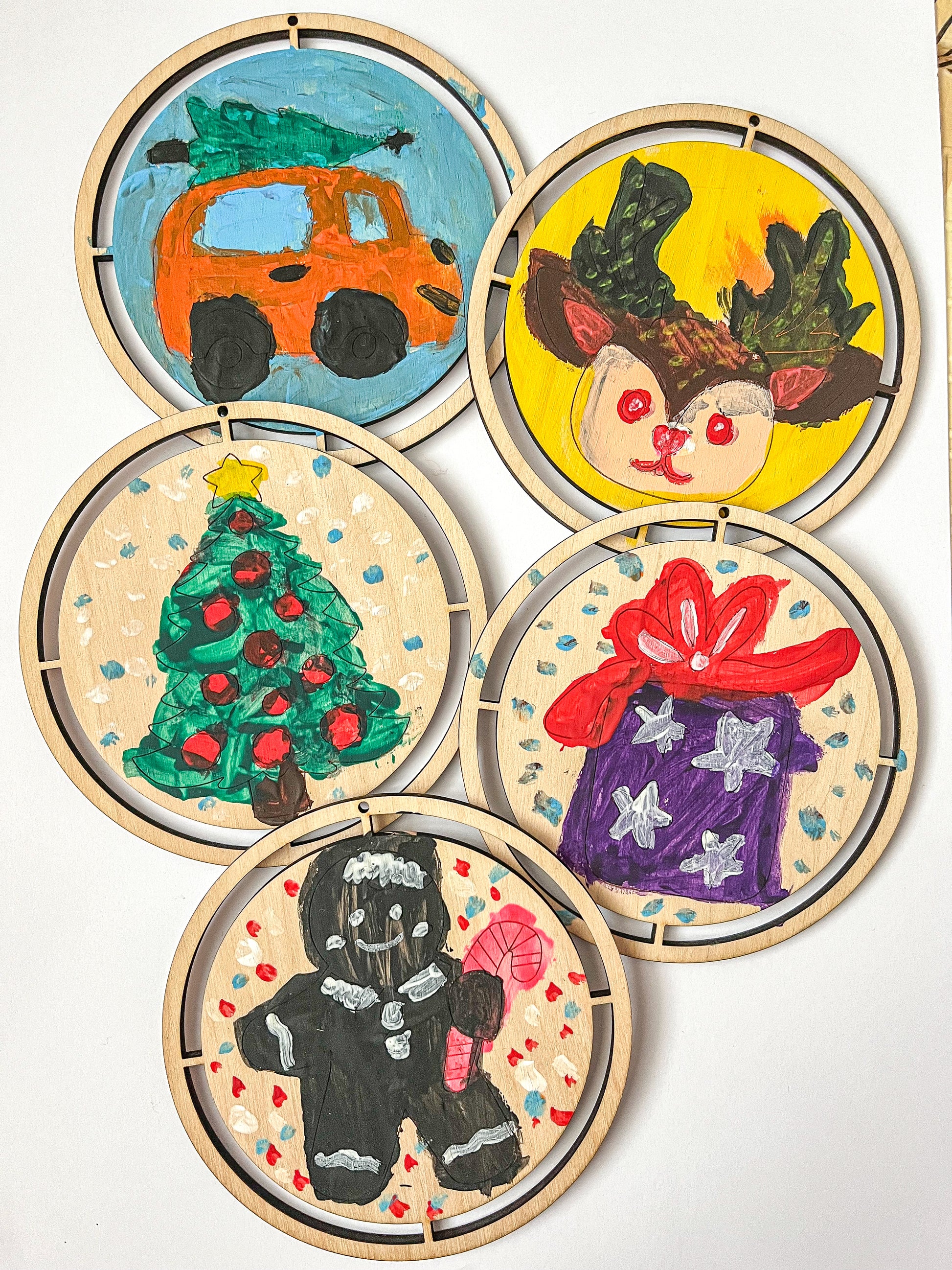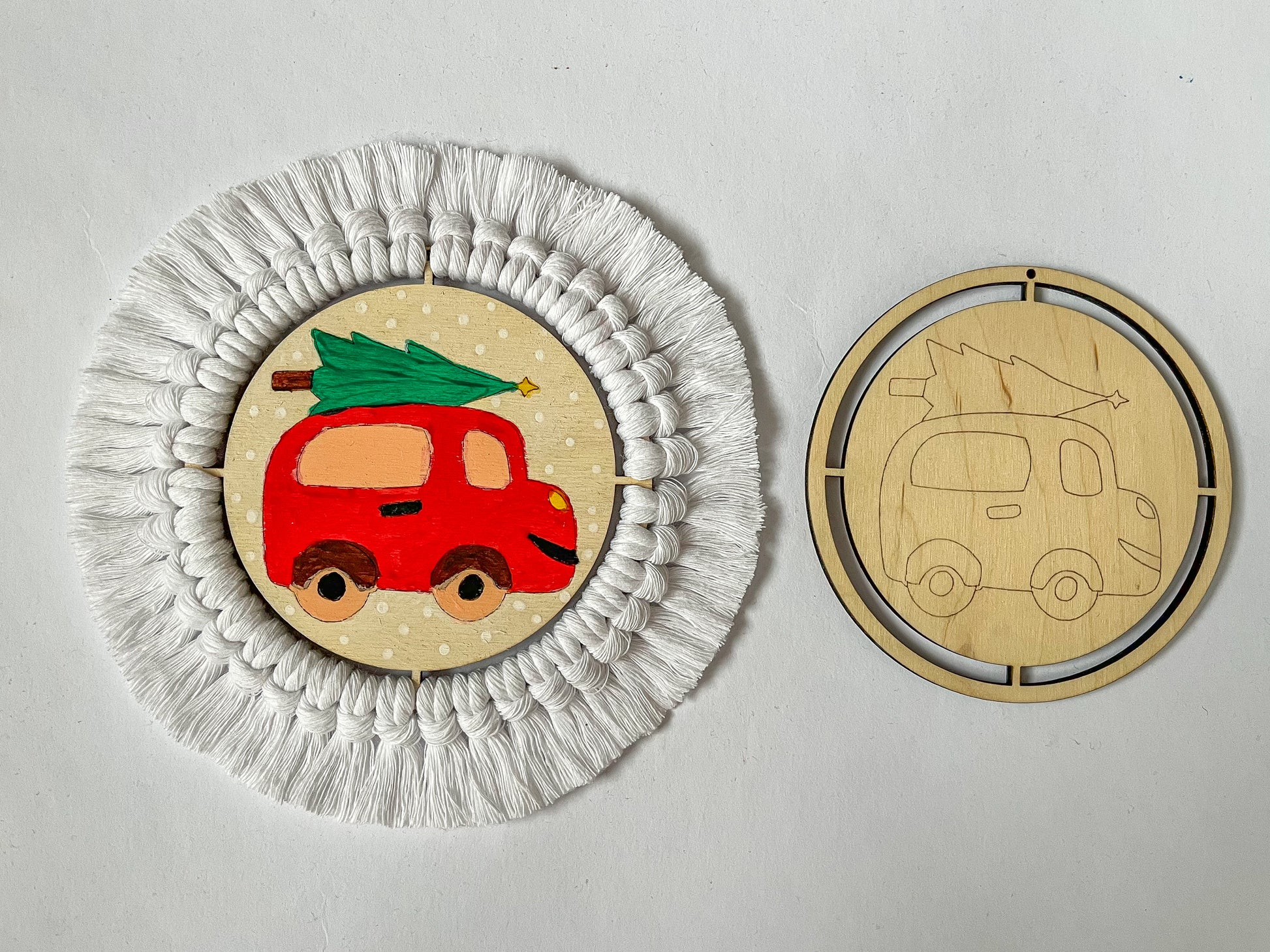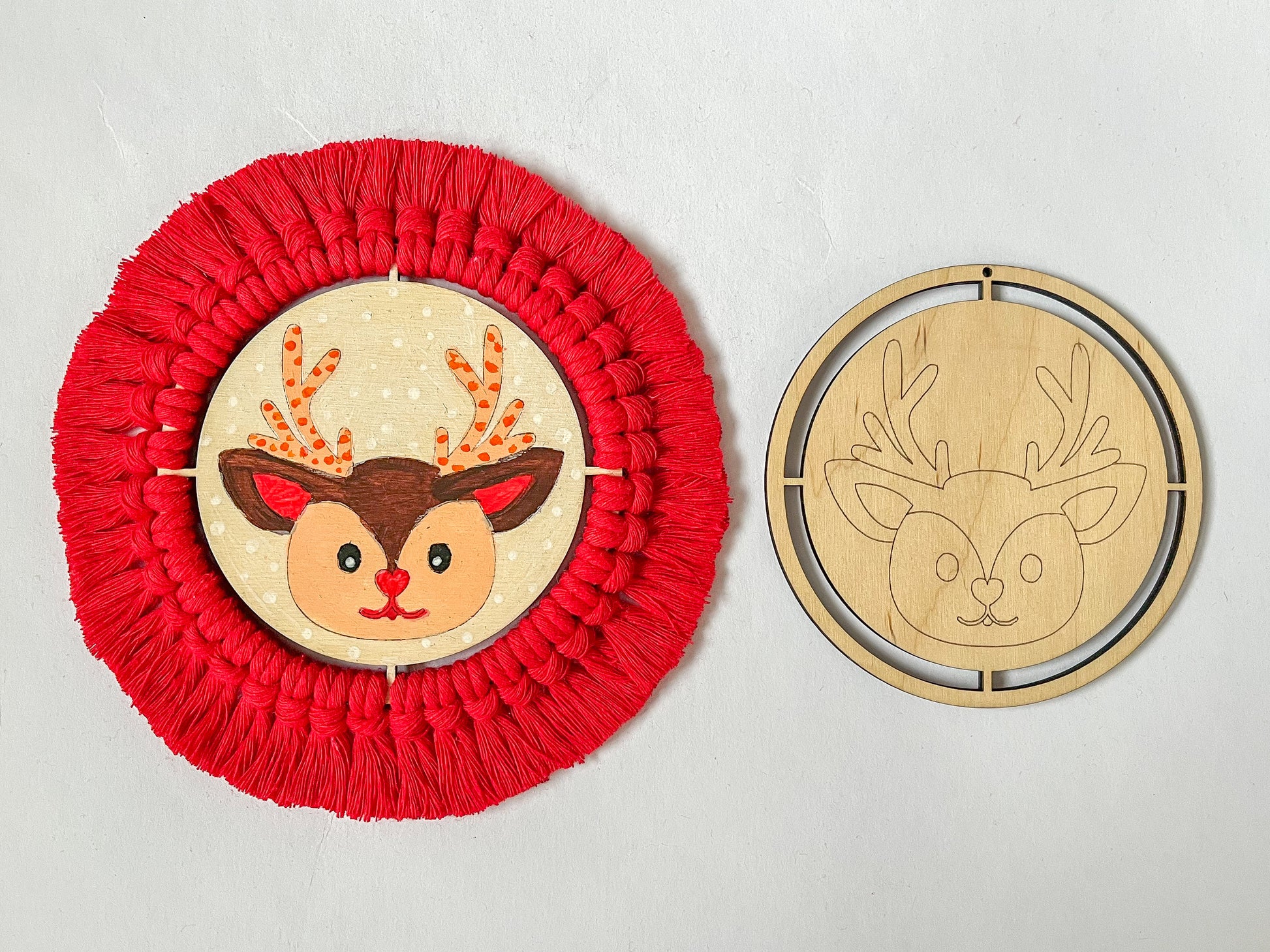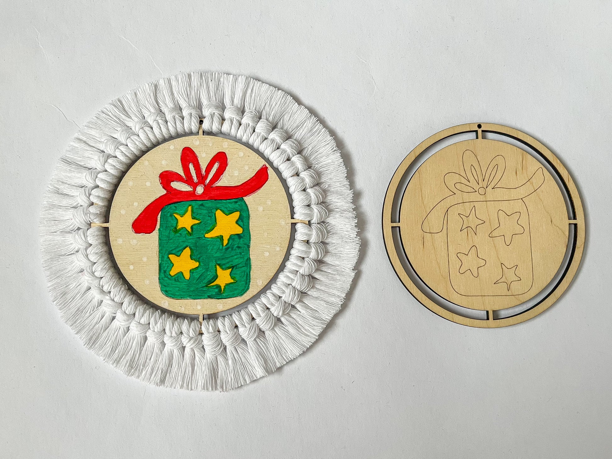 Dřevěné výřezy z mojí malé dílny jsou přípravené k vymalování jako omalovánky a na přidělání příze kolem dokola pouze za pomocí připevňovacího uzlíku. Přízi pak stačí hřebenem rozčesat a zastřihnout na požadovanou délku a máte dokonalou vánoční ozdobu, kterou jste sami vytvořili.