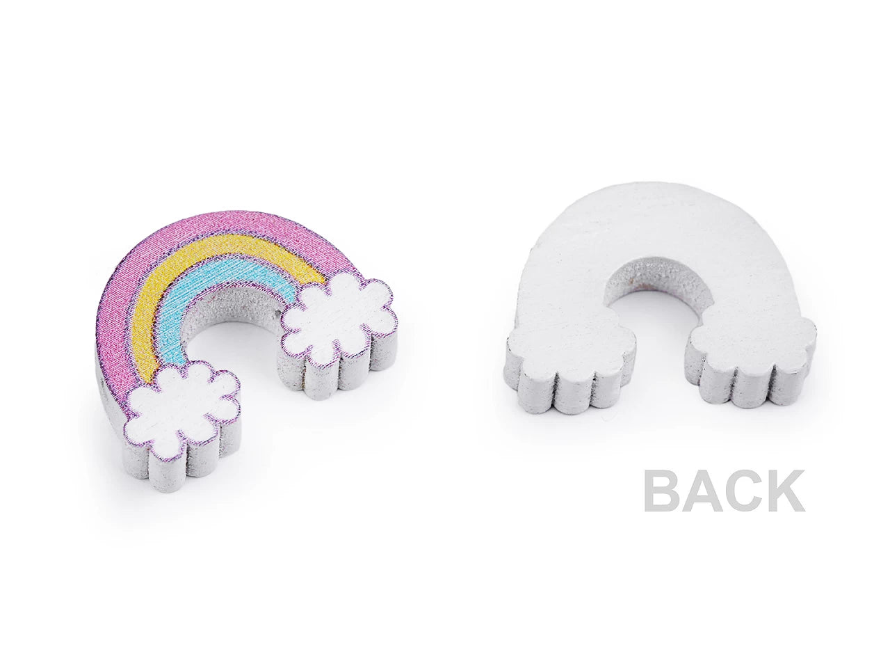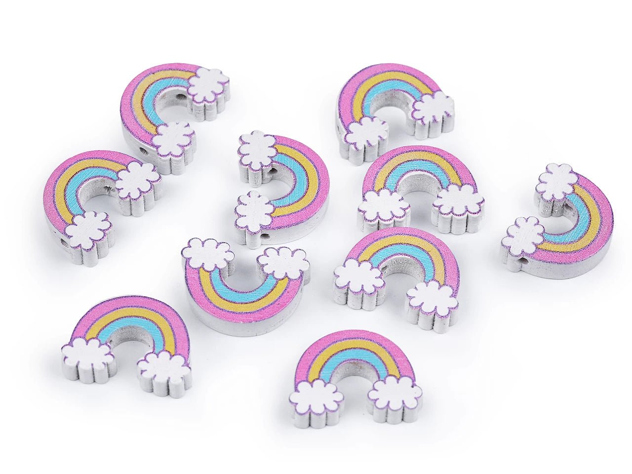Dřevěné korálky s roztomilým jednostranným potiskem DUHY potěší nejen korálkářky, ale všechny tvůrkyně ručních prací. Jejich velikou výhodou je lehký materiál. Dají se skvěle kombinovat s dalšími dřevěnými korálky, s kulatými ale i s dalšími zajímavými tvary. Dají se nalepit třeba i do ruky Macramé Andělky a nebo připevnit k Macramé klíčence.