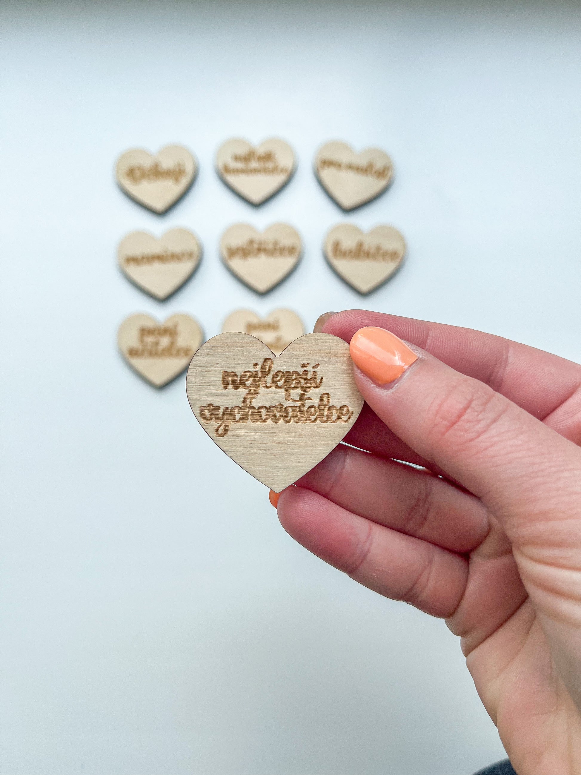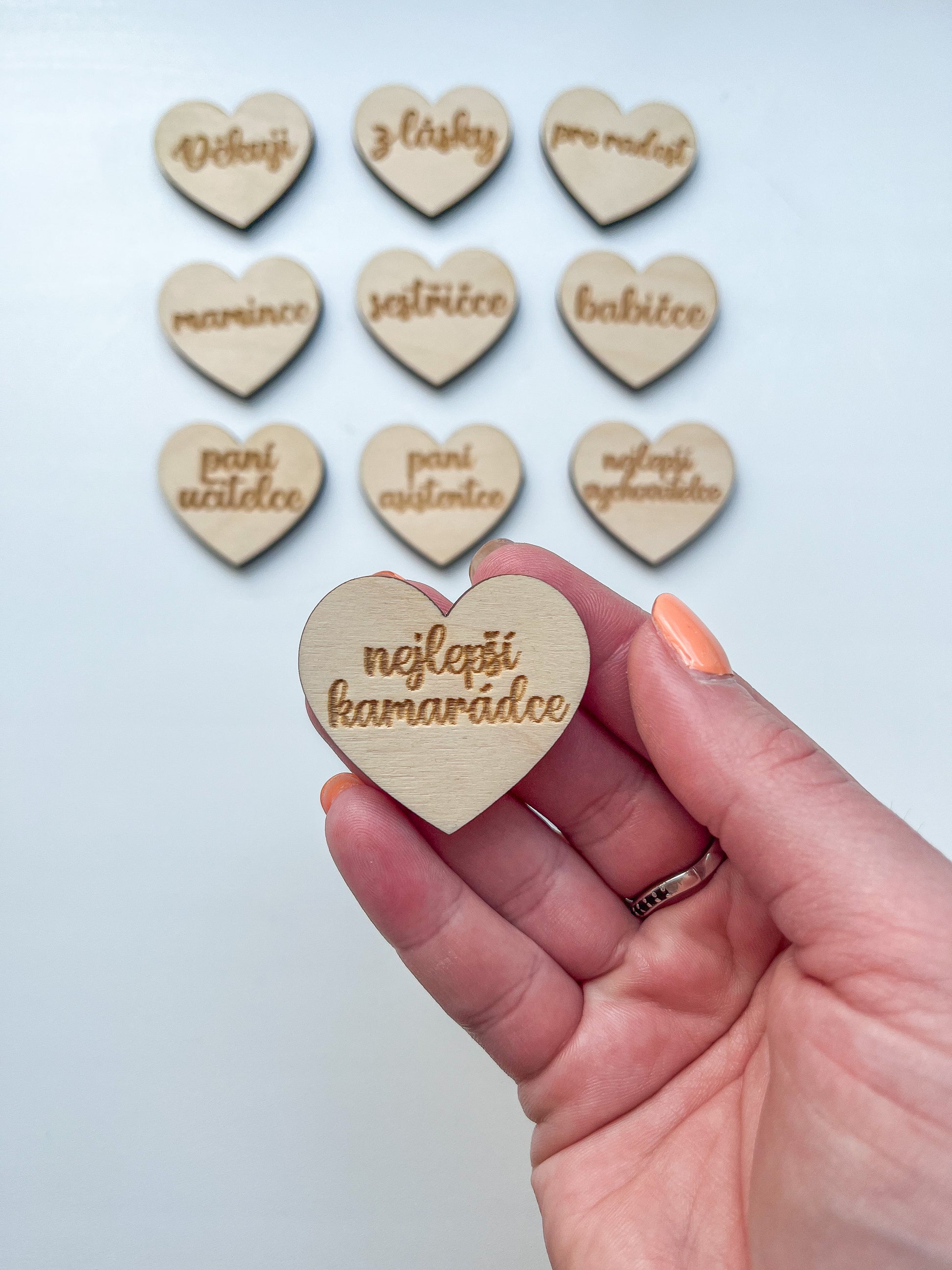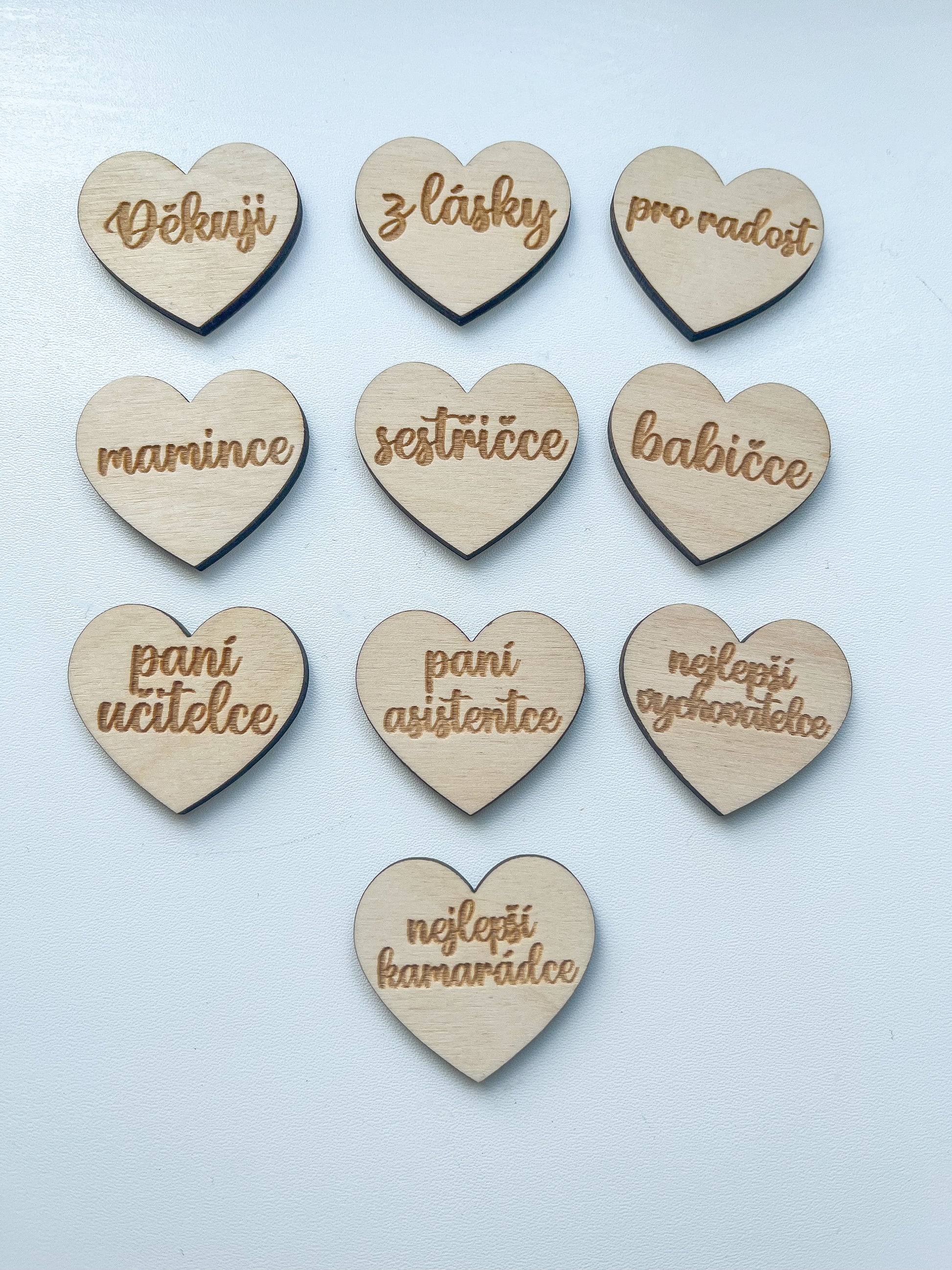 Dřevěné srdíčko, které můžete připevnit ke svému výrobku a věnovat ho jako originální a ručně vyrobený dárek svým milovaným. Vyberte si z naší nabídky a udělejte svůj dárek osobnější!