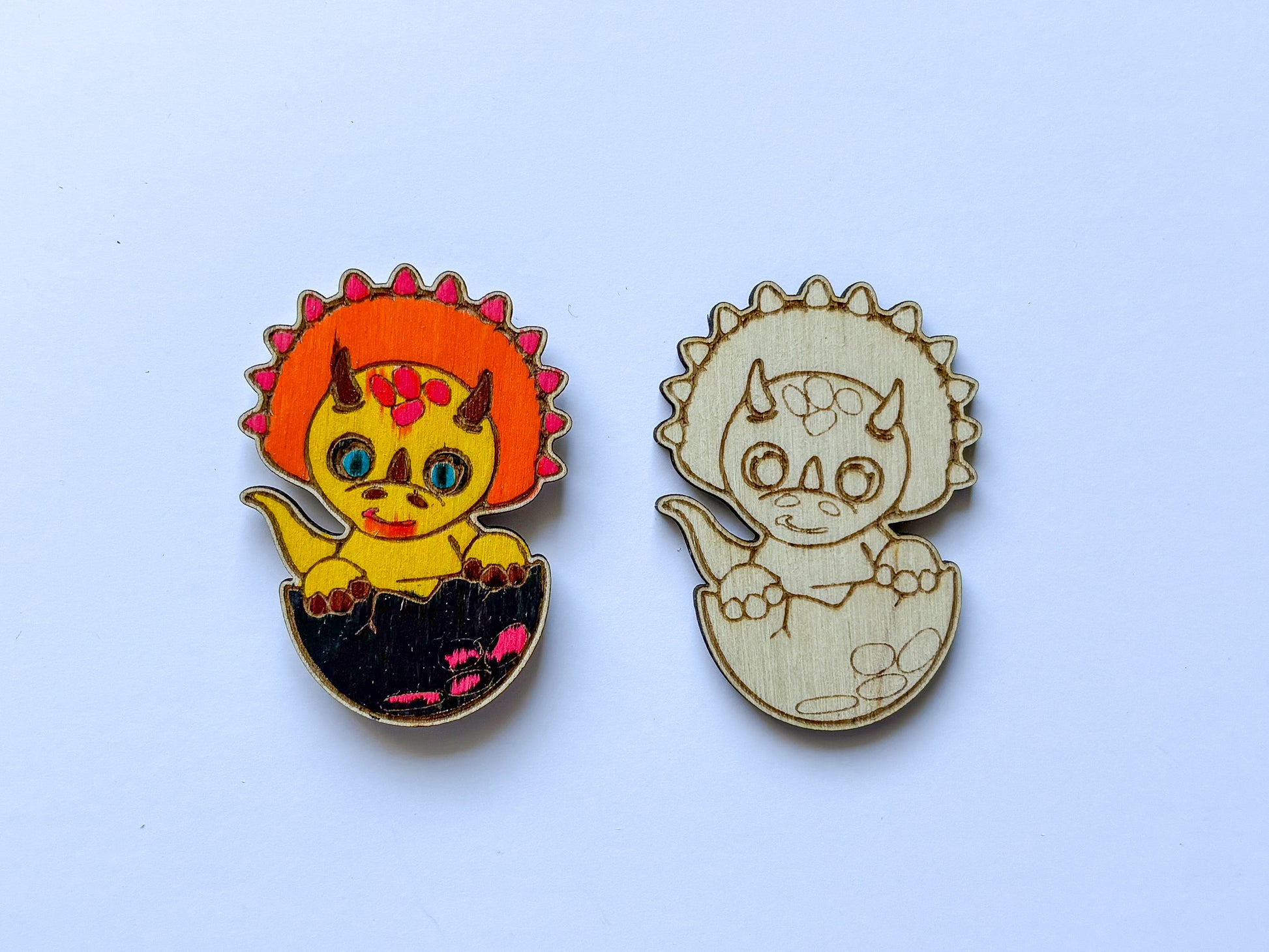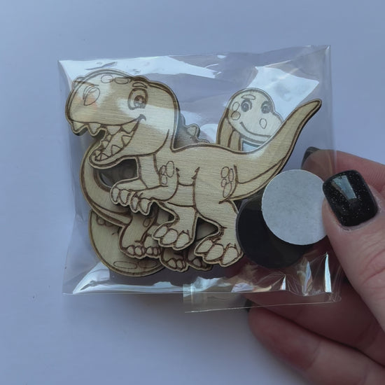 Lze objednat celou sadu anebo každého dinosaura zvlášť. Součásti je vždy dřevěný výřez i magnetek.