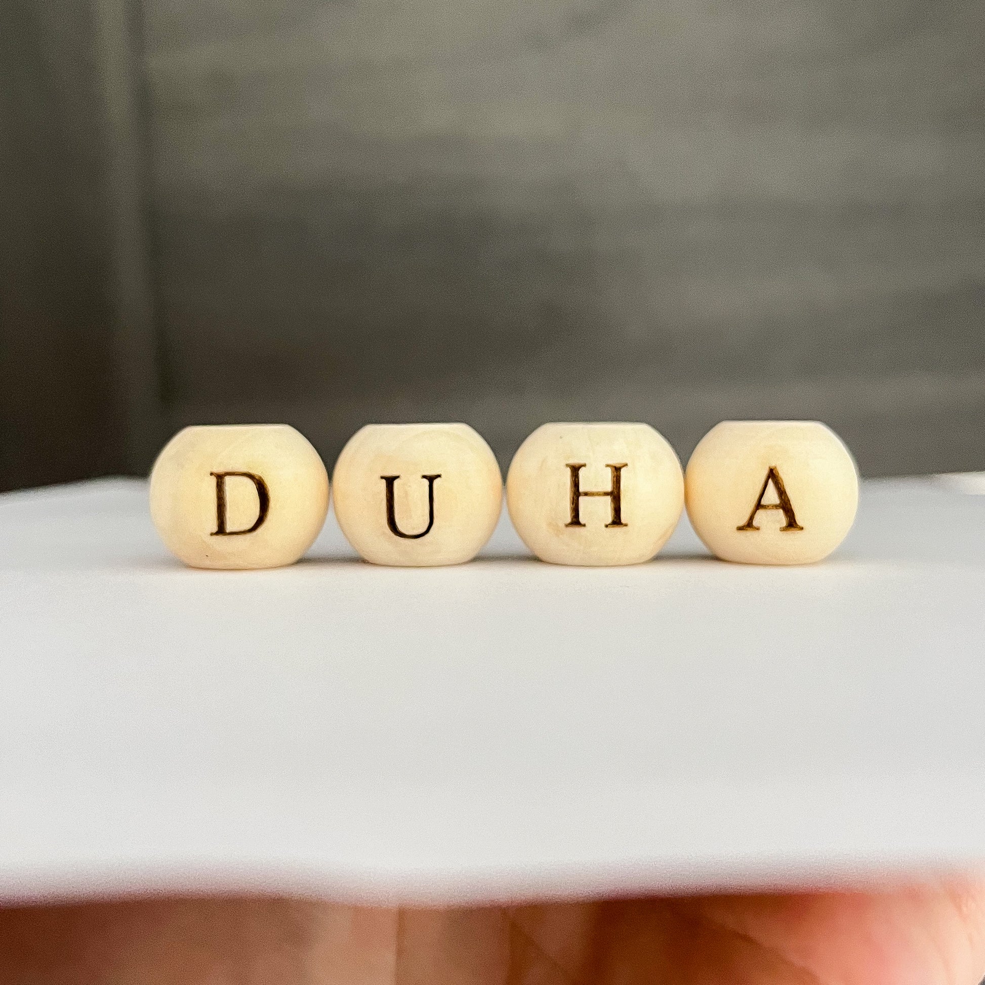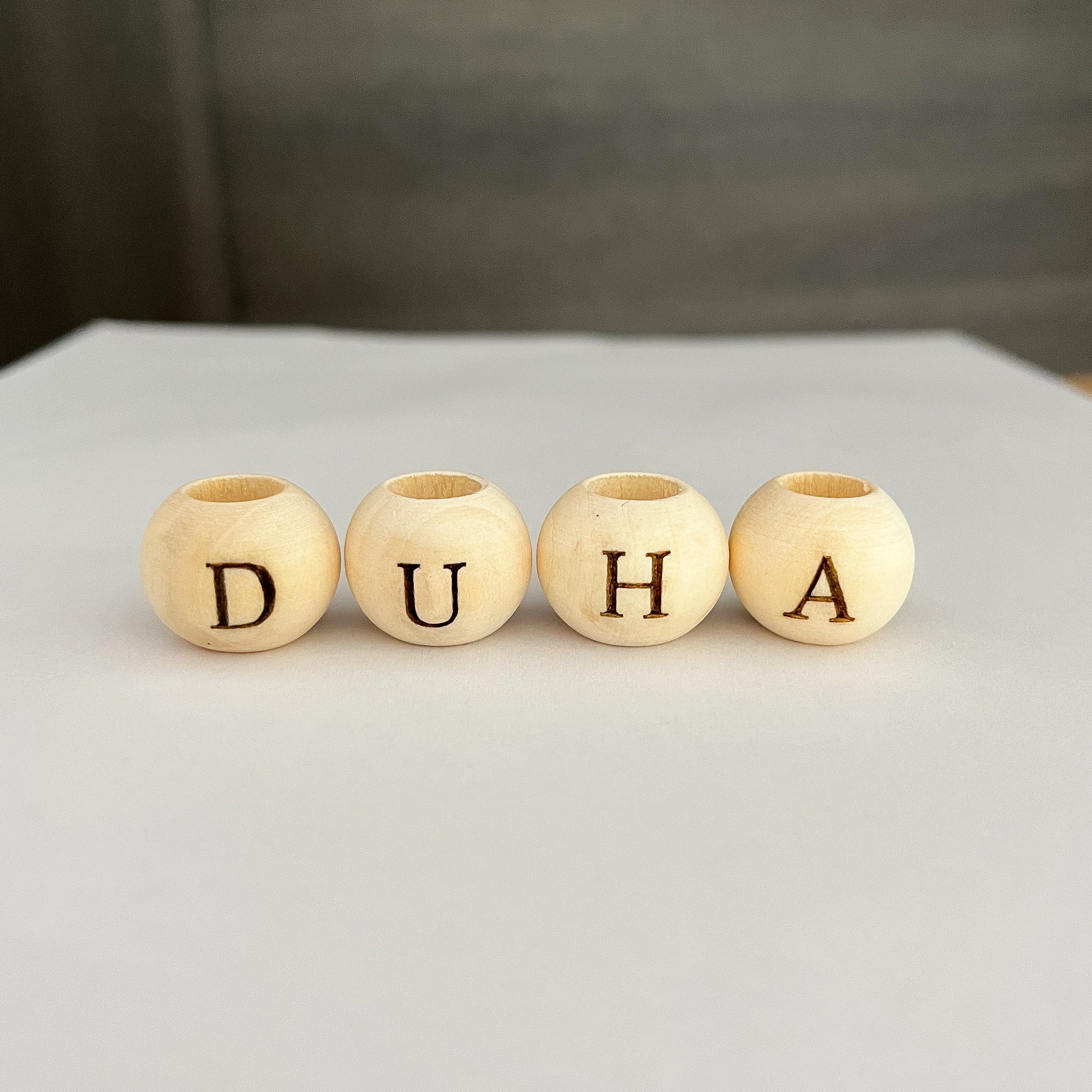 Dřevěný korálek s písmenkem vygravírovaným podle vašeho přání, ze kterého si můžete vytvořit celý personalizovaný nápis, jméno anebo třeba vzkaz pro vaše milované.