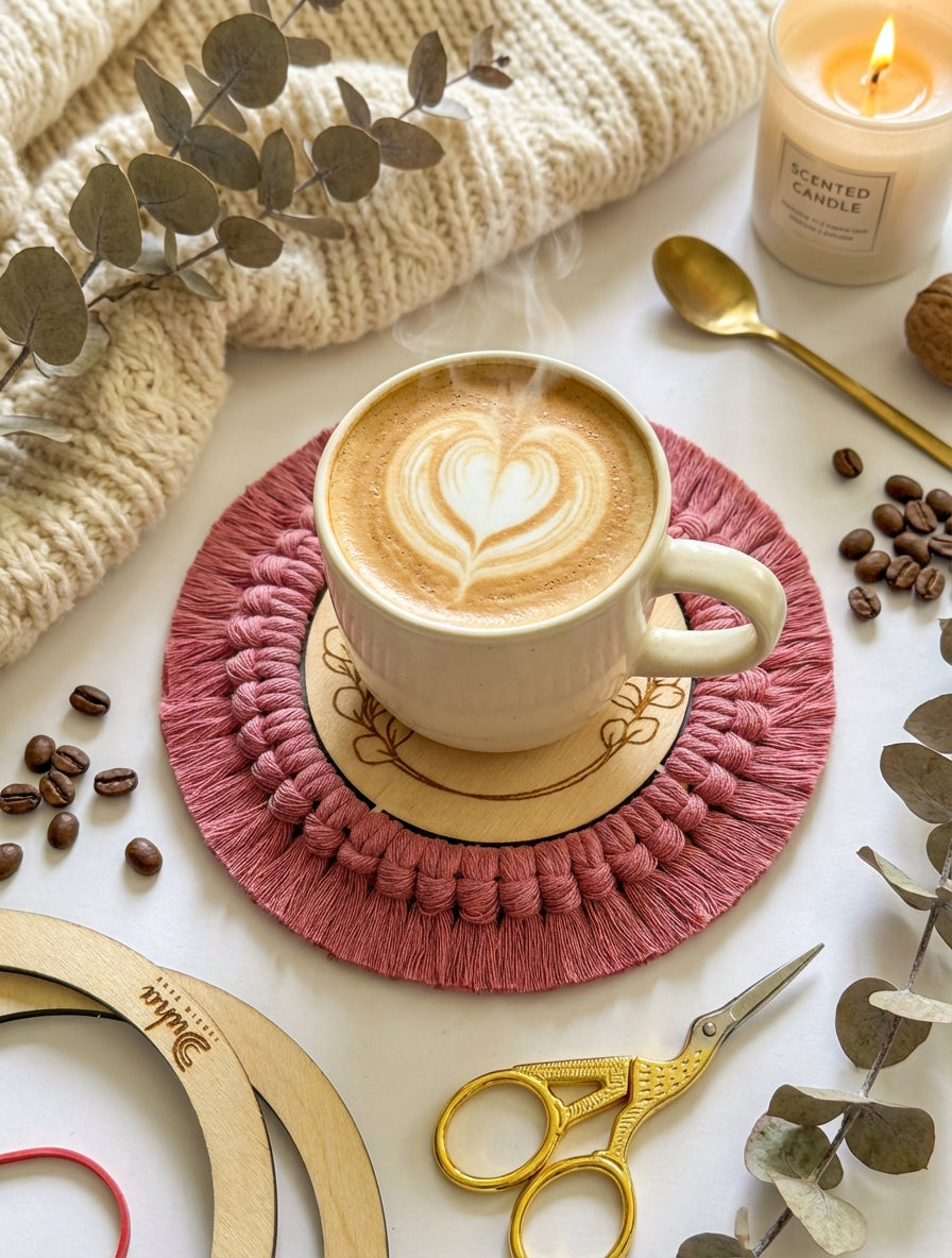 Dřevěný podtácek pro Macramé a Háčkování - EUCALYPTUS