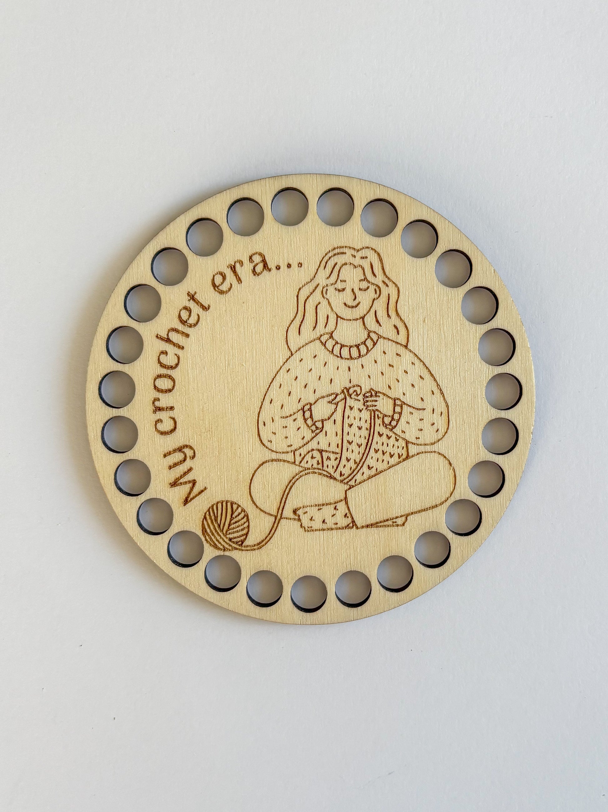 Dřevěný základ na háčkovaný podtácek z mojí dílny o průměru 10 cm. Všechny motivy jsou mou autorskou tvorbou.