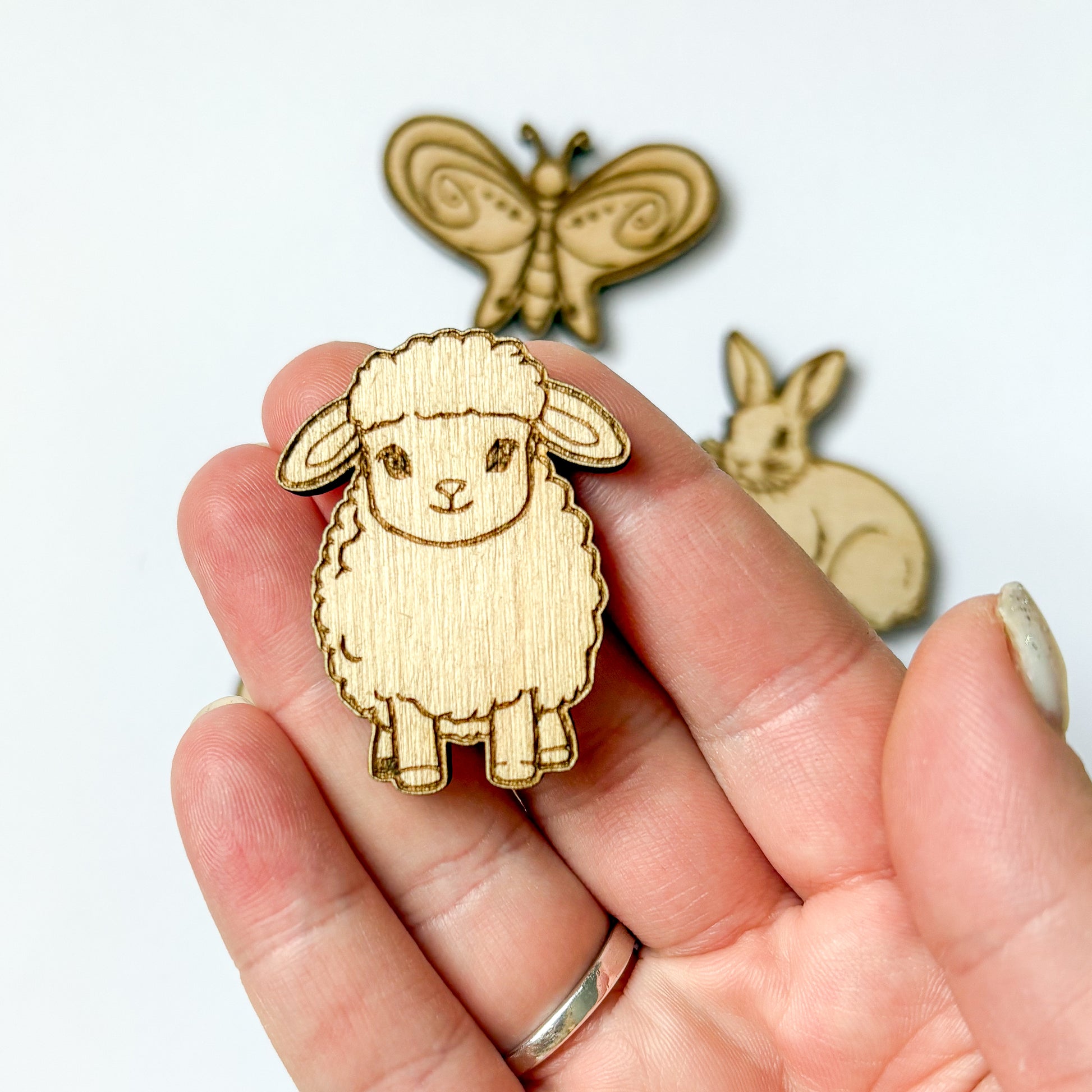 VELIKOST: Všechna zvířátka (kuřátko, zajíček, motýlek a ovečka) mají velikost 4 cm, obě vajíčka + květina jsou velká 3 cm