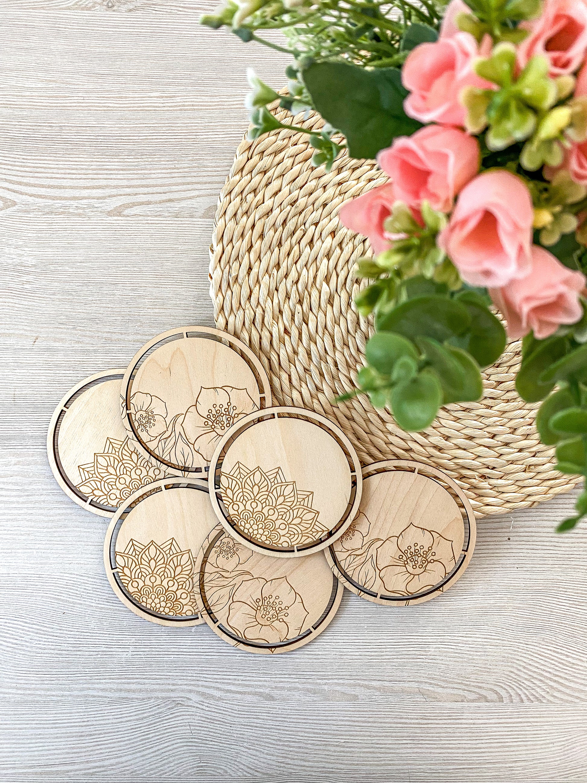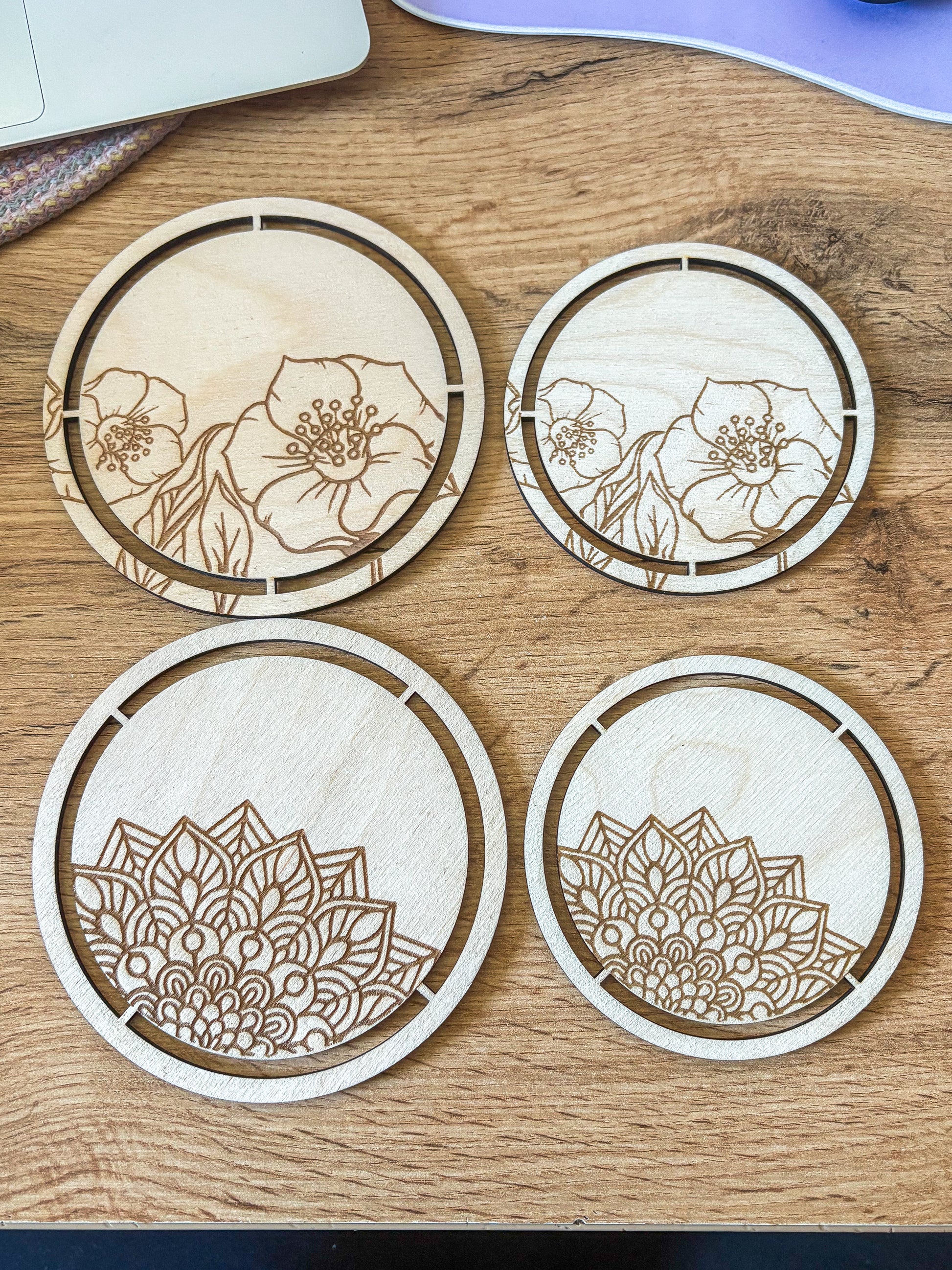 Dřevěný podtácek - MANDALA/KVĚTINA (více velikostí)