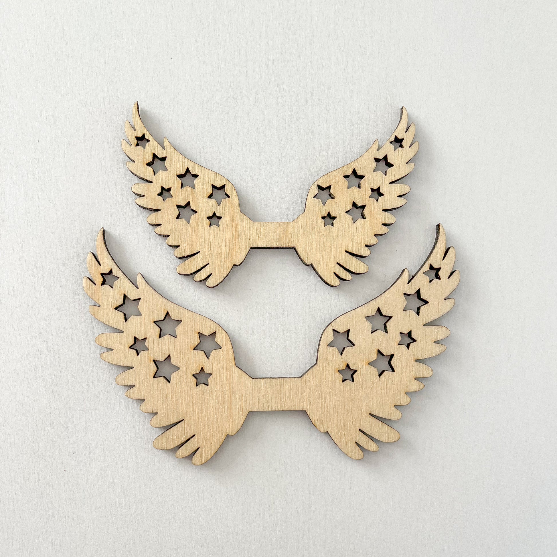 Dřevěná andělská křídla s výřezy malých hvězdiček přímo z mojí dílny, vhodná k dotvoření vašeho macramé anděla/andělky k té největší roztomilosti. Všechna moje křídla jsou pečlivě vyřezaná a obroušená od možného opálení.