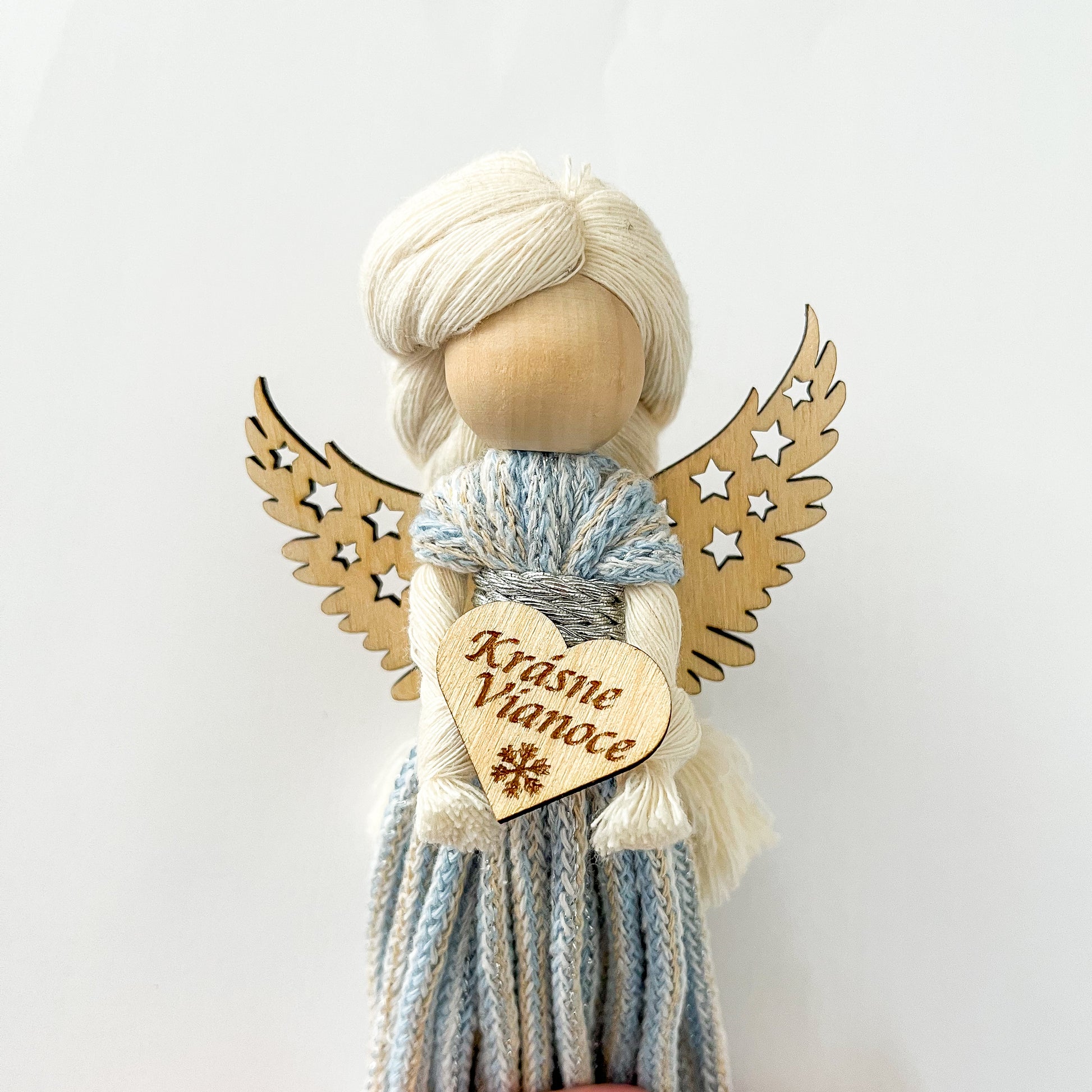 MOJE DOPORUČENÍ: Na tělo i vlasy macramé andělky použijte klubíčko 10 m Bobbiny 3mm regular(rozčesatelné) příze a na hlavičku dřevěný korálek 25 mm.