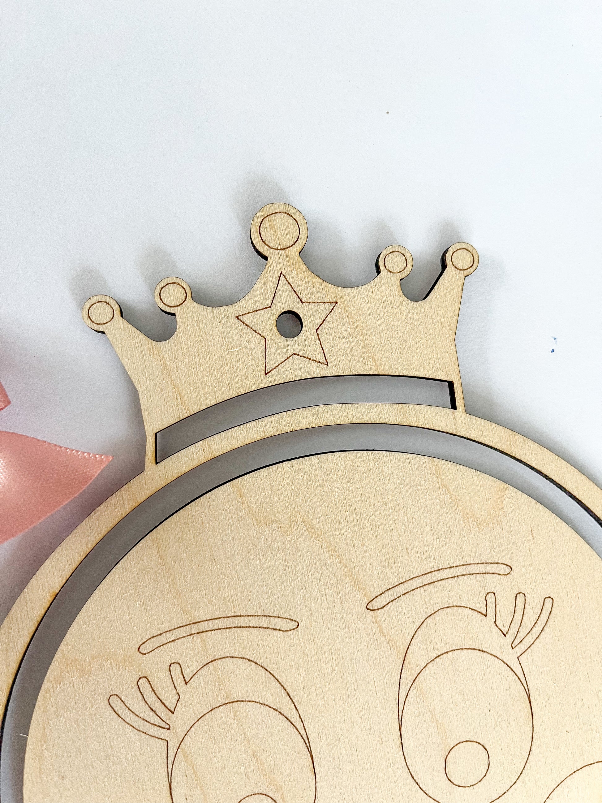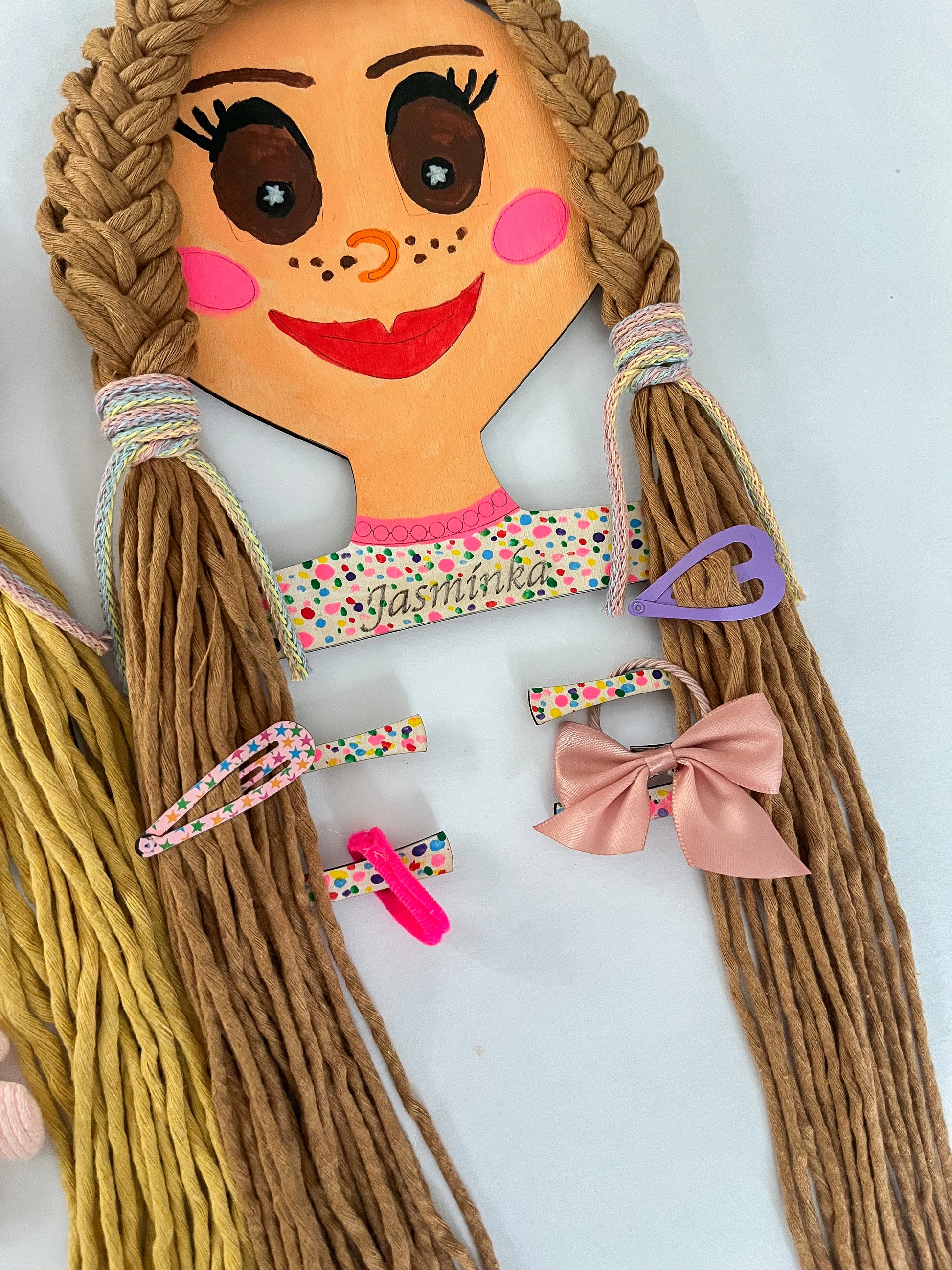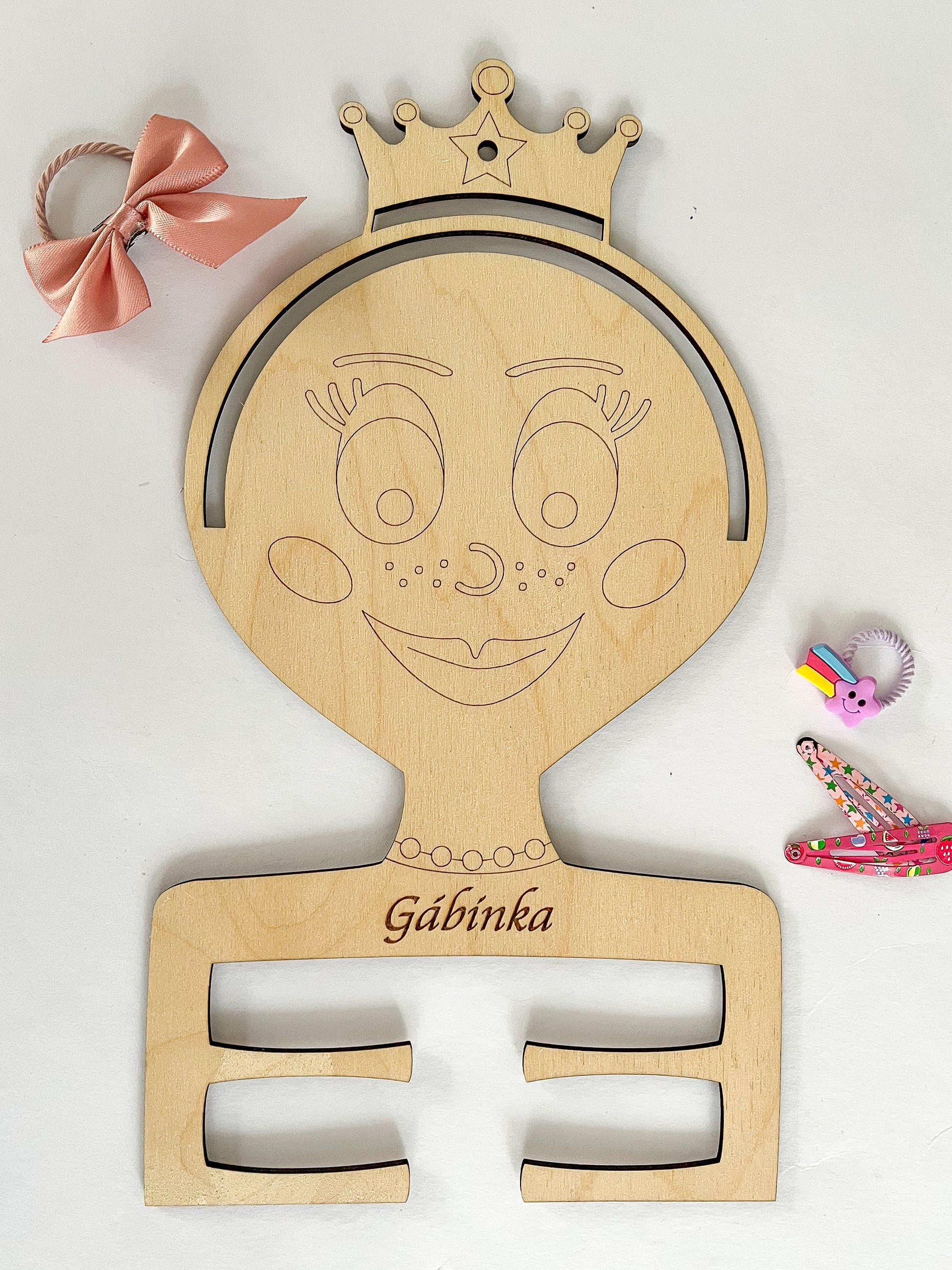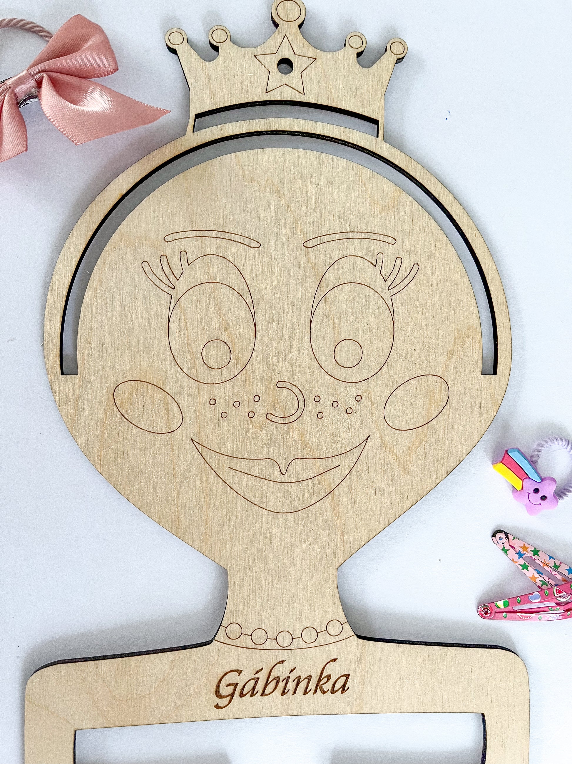 Dřevěný výřez Princezna z mojí vlastní dílny pro vytvoření originálního sponkovníku, včetně držáků na gumičky anebo čelenky.