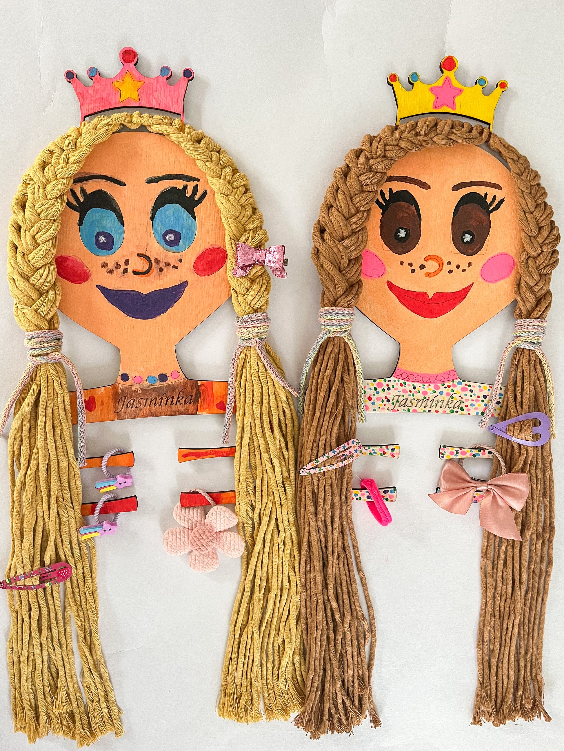 Nechte vaše děti vymalovat obličej barvami a vytvořit vlasy, za pomocí macramé příze, na kterou si poté zavěsí svoje sponky. Nechte, ať je tvoření odnese do jejich říše fantazie a svojí princeznu si vytvoří podle sebe.