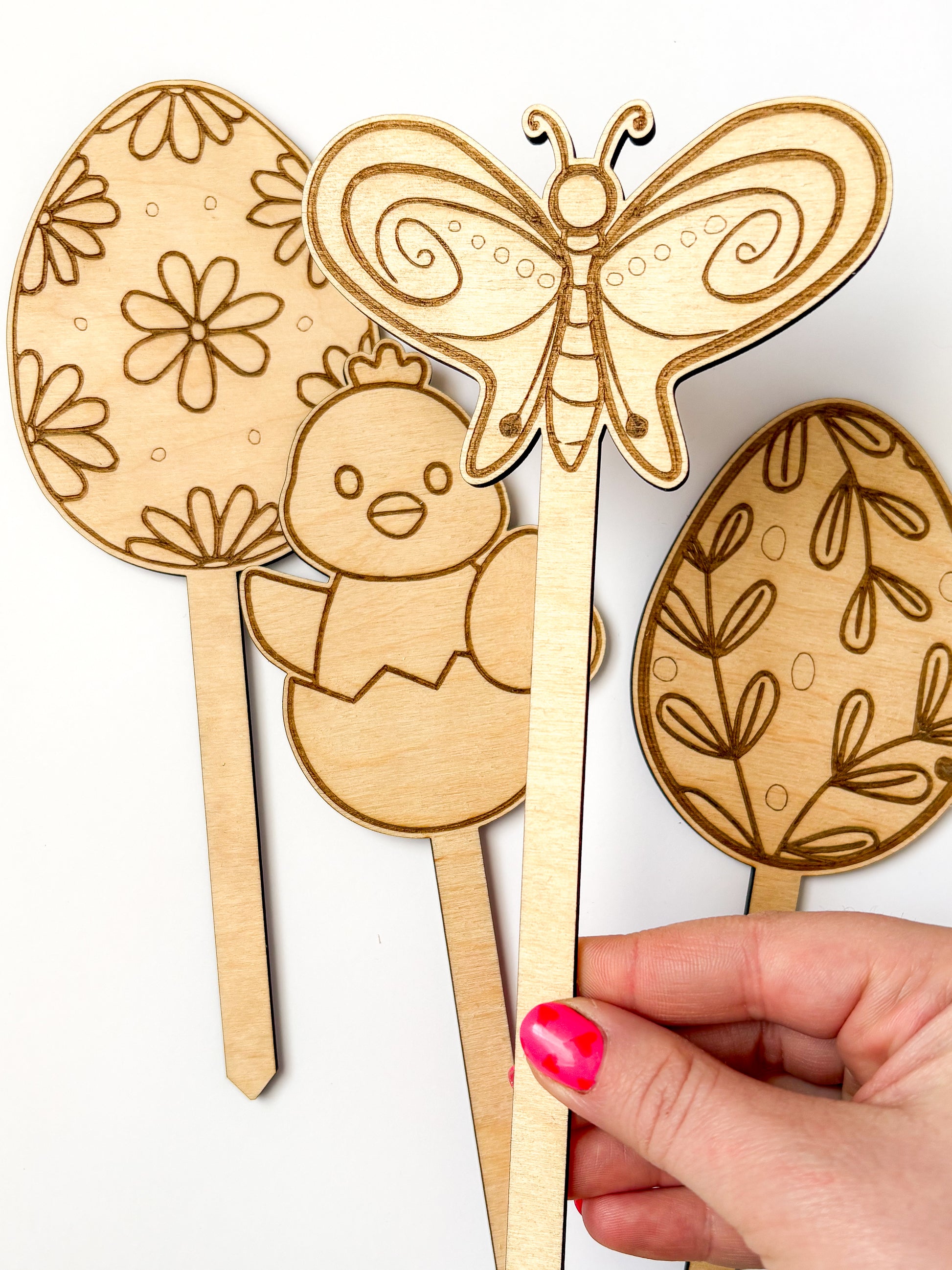 Dřevěné zápichy z mojí malé dílny jsou rovnou připravené k vymalování jako omalovánky, u kterých na konci čeká boží výsledek, se kterým si můžete vyzdobit váš domov, pokojíček anebo je darovat jako osobní dáreček někomu jim blízkému.