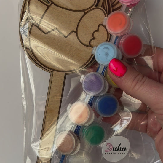 SADA S BARVAMI OBSAHUJE:Balíček všech 4 motivů + paletu 12 akrylových barev na vymalování včetně 2 štětců (malý kulatý a malý plochý - ideální pro děti).